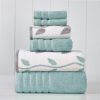 - FEATURES: Set includes one yarn dyed, organic vines jacquard bath towel, hand towel and washcloth, and one solid bath towel, hand towel and washcloth. All material is ultra plush, soft and absorbent.